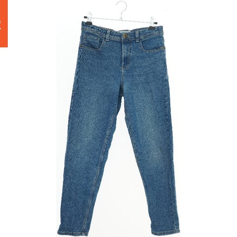 Blå jeans til børn med klassisk design med fem lommer. Der er to frontlommer samt en lille møntlomme på højre side, og der er to baglommer. Bukserne har en enkel lukning foran med knap og lynlås. Stoffet har en let falmet effekt, der giver dem et moderne look. Det er heller ingen synlig brand.