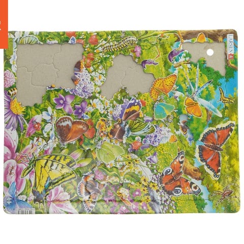 Puslespil med 63 brikker, der danner et motiv af søde katte og sommerfugle ved blomster. Puslespillet er farverigt og designet til at udvikle finmotorik samt logisk tænkning. Produktet er egnet til børn fra 6 år og kommer i en lilla kasse med en afsluttet størrelse på ca. 31 x 23 cm.