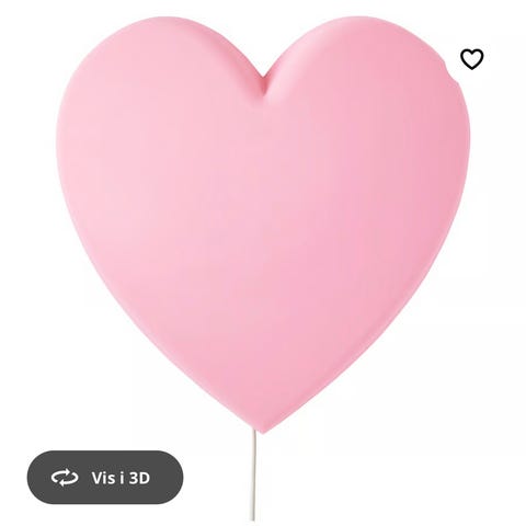 Tags: lampe, væg, hjerteformet, rosa, belysning.