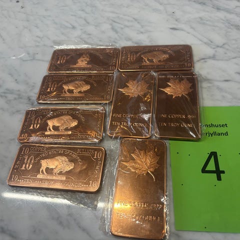 3 stk. one kilo fine 999. copper. Fra dødsbo