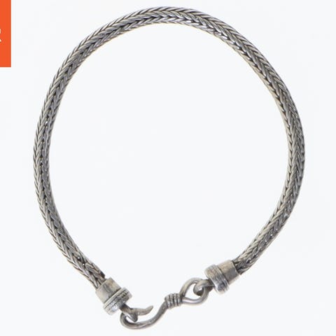 Armbånd lavet af sølvmateriale, prydet med blomsterformede motiver. Det har en længde på 17,5 cm. Armbåndet har en enkel og moderne stil med små dekorative led, der forbinder de blomsterformede elementer.