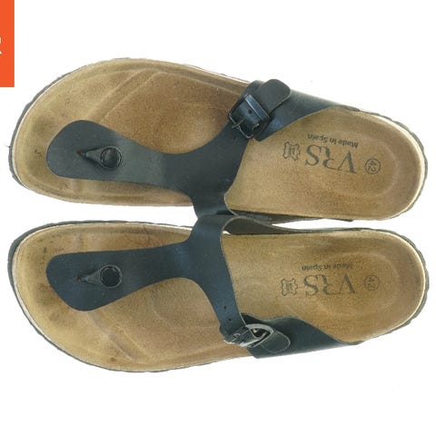 Et par sorte sandaler i størrelse 26 designet til børn. Sandalerne har remme der krydses over foden for ekstra støtte og komfort, og en lukning med velcro om anklen for nem justering. Ydersålen er lav og flad, hvilket giver en stabil kontakt med jorden. Disse sandaler er ideelle til sommerbrug og tillader ventilation af foden.