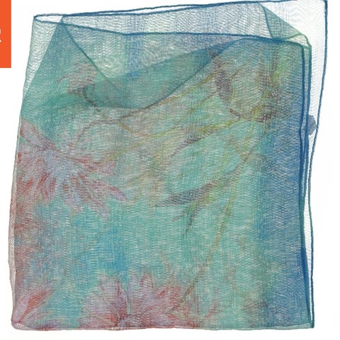 Dette er et let tørklæde med et geometrisk mønster i varme farver som orange, gul, og lidt grå. Tørklædet måler 37x110 cm og består af et tyndt, gennemsigtigt materiale. Det kan bruges som dekoration eller bæres som et stilfuldt tilbehør.
