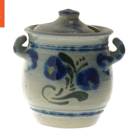 Lågkrukke med motiv (str. Ø. 10,5 cm længde. 11 cm)