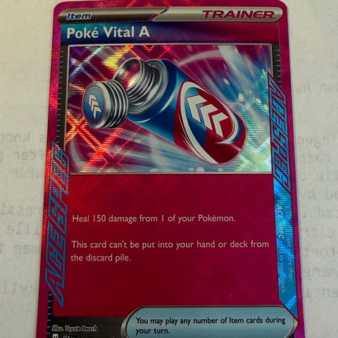 Pokémon Charizard Spirit Link trænerkort. Kortet er et Trainer-kort af typen Pokémon Tool, som kan sættes på et Pokémon-kort. Effekten gør, at turen ikke slutter, når det tilknyttede Charizard-kort udvikles til M Charizard-EX. Velegnet til samling eller brug i Pokémon Trading Card Game.