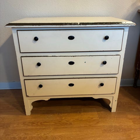 Kommode, hvid. Skuffer udført i facon med bordplade.
