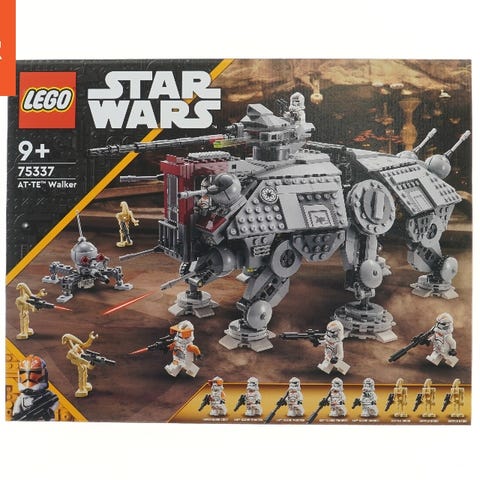 LEGO sæt nummer 75337 featuring Star Wars AT-TE Walker med flere minifigurer. Sættet er velegnet til personer over 9 år og indeholder detaljerne fra Star Wars-universet, inklusiv Commander Cody, klonetroopere og kamprobotter. Perfekt til at bygge og udstille scenarier fra galaksen langt, langt væk.