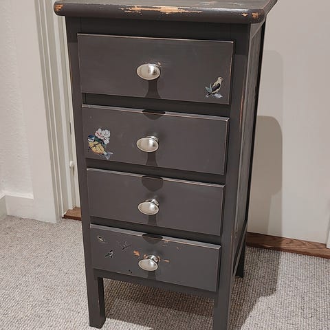 Med to skuffer. Perfekt til sommerhuset, børneværelset eller den lille entré. Kan leveres I Aarhus området for 75 kr.