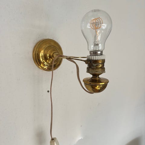 2 stk. små retro væglamper sælges samlet. De er meget gamle (50-80 år) og kan bruges med forskellige former pærer og med eller uden lampeskærm, som dog ikke følger med.