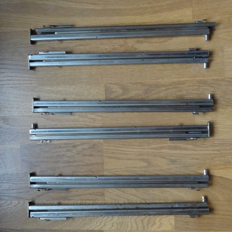 2 sæt teleskopudtræk til AEG ovn årgang 2015. Fuldt udtræk. Har været brugt. Sælges på grund af flytning. Sælges sætvis. Prisen er for begge sæt samlet. Du kan selvfølgelig købe et eller flere.