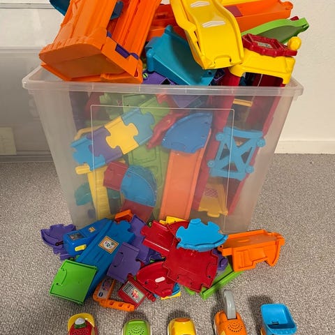 Parkeringshus fra vtech toot toot drivers. Har man en lille en der elsker biler så er dette parkeringshus med lys og lyd helt perfekt og giver mange timers underholdning! Parkeringshuset passer sammen med alle biler fra vtech toot toot drivers og har man flere dele kan det hele samles som én stor bane og fylde stuen med sjov for både børn og voksne. Alle dele medfølger og lys og lyd dele virker stadig upåklageligt! Trænger dog nok til en klud da det længe har samlet støv herhjemme men ellers fremstår det i virkelig god stand!