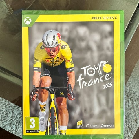 Tour de France 2025 videospil til Xbox Series. Cykelløbsspil med officiel Tour de France-licens, hvor spilleren kan deltage i etaper og løb som professionel cykelrytter. Spillet er klassificeret PEGI 3 og egner sig til alle aldre. Leveres i standard grøn Xbox Series-spilæske.