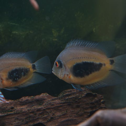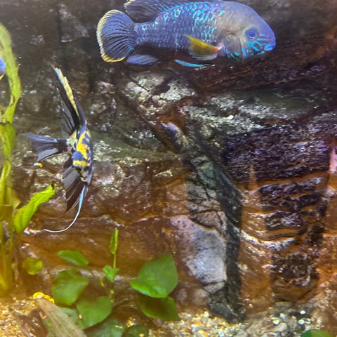 Blue Acara & Rødstrubet ciklide