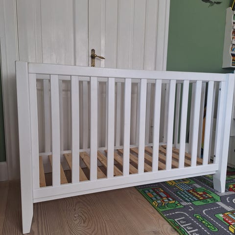 Skummadras fra änglamark og kapok-rullemadras fra Cocoon kan medfølge i handlen, hvis det har interesse. Brugt sparsomt til 1 barn.