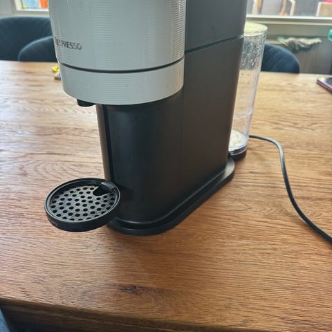 Nespresso kaffemaskine med mælkeskummer og glaskande