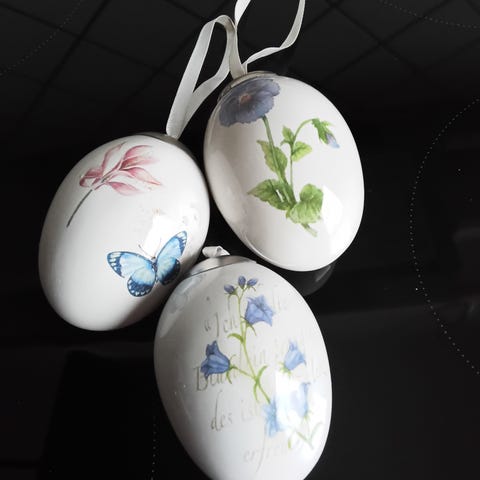 Flotte Kgl porcelæns påskeæg. 5 stk super flotte. De to der ligger til venstre er revnet, den ene forsøgt limet. Hvis jeg evt skal sende vil jeg komme lidt tape på. Dem får i GRATIS med. Ca 6 cm lange.