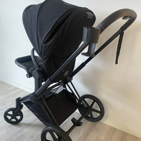 Der medfølger en helt ny Cybex Callisto carry cot, som stadig er indpakket og aldrig brugt – perfekt hvis man ønsker fleksibiliteten mellem klapvogn og barnevogn.