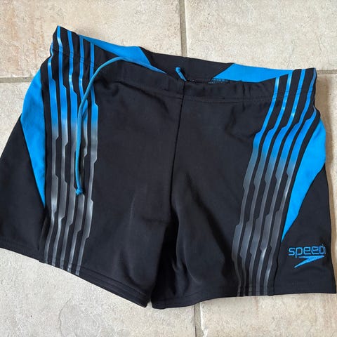 Speedo badebukser, str. 164. Blå med mønster. Er som nye, kun brugt en enkelt gang. Giv et bud.