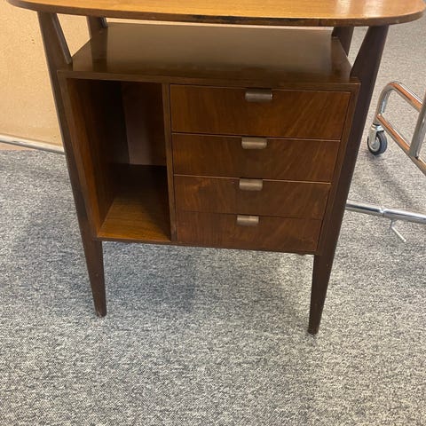 Der mangler et enkelt lille stykke træ ved det ene håndtag, men ikke noget man som sådan lægger mærke til (se billede) Nuancer i træet forekommer og få ridser, men vurderer det blot er flot patina.