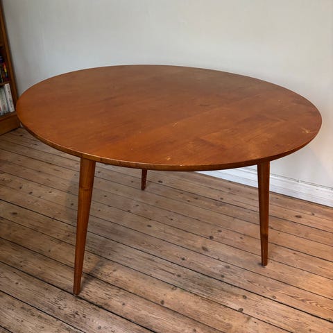 Rundt teaktræ spisebord med 1 hjemmelavet tillægsplade