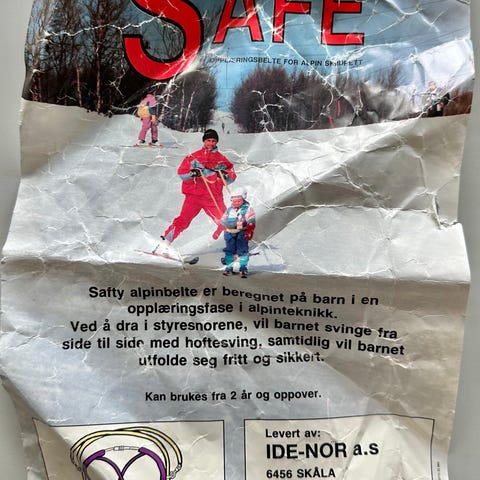 Skisele til når de små skal lære at stå på ski, brugt få gange. Kan hentes i Vipperød eller på Christianshavn