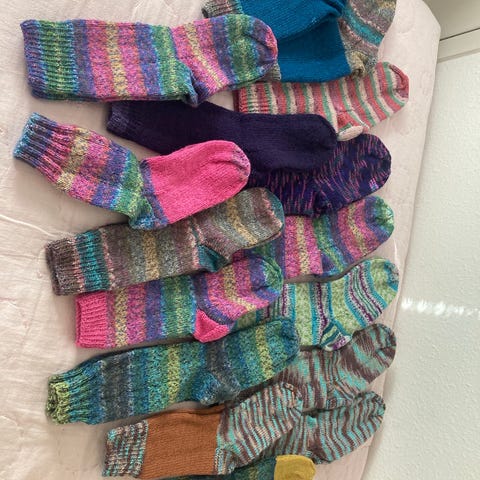 Strikkede strømper i 75% uld og 25% polyamid.