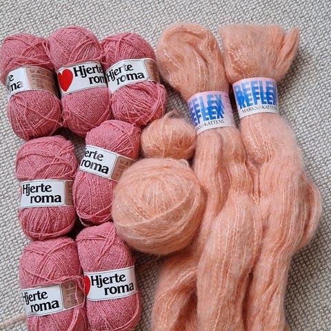 2 forskellige lyserøde og 1 lyseblå og 1 hindbærfarvet