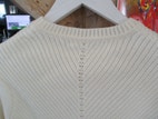 FLOT SWEATER, I HVID-DIAGONAL MØNSTER, MED SMUK SAMLING DER BRYDER DET DIAGONALE MØNSTER.