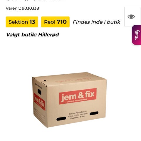 jem & fix Senior flyttekasse i kraftig papkvalitet på 7 mm. Kassen måler 584 x 372 x 374 mm
