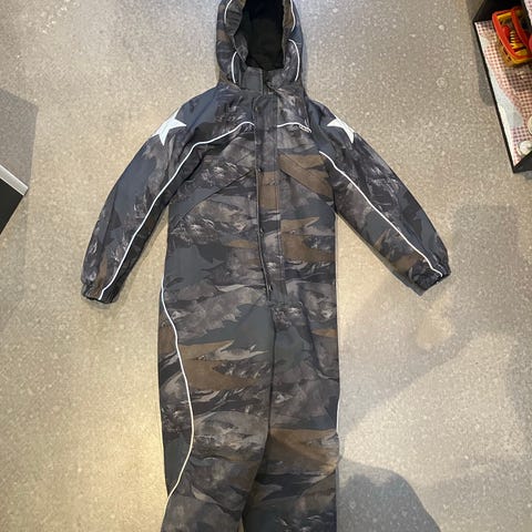 Molo flyverdragt i str. 128 til unisex. Dragten er fremstillet i polyester og har gul bundfarve med print af rådyr. Lukkes med trykknapper foran. Forstærkninger med stjernedetaljer på knæ og bagdel. Velegnet som overtøj til børn i overgangs- og vintervejr afhængigt af lag-på-lag påklædning.
