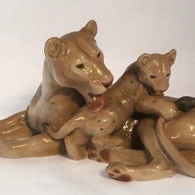Bing & Grøndahl. Løveunge. Model 1923. Højde 15 cm. (1 sorte