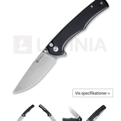 Kniv med mørkt træhåndtag og rustfrit stålblad med bølgemønster. Inkluderer en brun læderskede med trykknaplukning. Kniven har en metalring i håndtaget for bedre greb og håndtering.