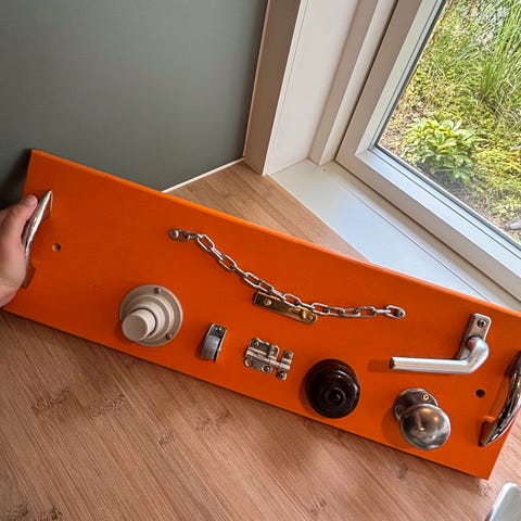 Hjemmelavet pilfinger tavle eller aktivitets tavle, måler 80 cm x 60 cm