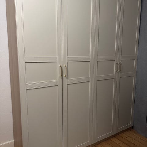 Sælger et sæt stilrene og velholdte skabe fra IKEA, perfekte til indretning af walk-in closet eller som rummelig opbevaringsløsning i soveværelset.