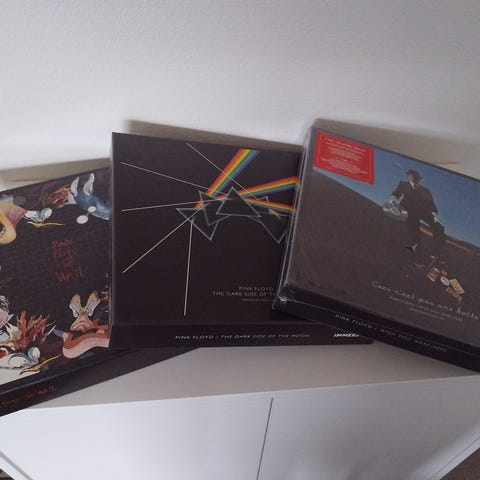 Dette er Immersion Box Set: Pink Floyd - The Dark Side of the Moon, som indeholder 3 cd'er, 2 dvd'er og 1 Blu-Ray. Derudover er der en masse andet - se billede 2 og 3 for indhold.