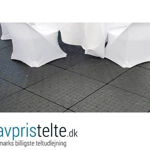Ca 75- 80 m’2 gulv brugt til partytelte. Har været brugt 2 gange. Lavet af spåntræ. God stand.