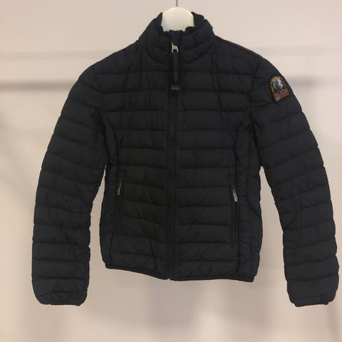Parajumpers Anchorage letvægtsjakke i størrelse Y-S. Jakken er quiltet og foret og har høj krave samt gennemgående lynlås foran. Farven fremstår mørk, tæt på sort. På ærmet sidder det karakteristiske Parajumpers Anchorage-logo. Jakken har sidelommer med lynlås og er designet som en let, varm overgangs- eller vinterjakke til børn/unge.