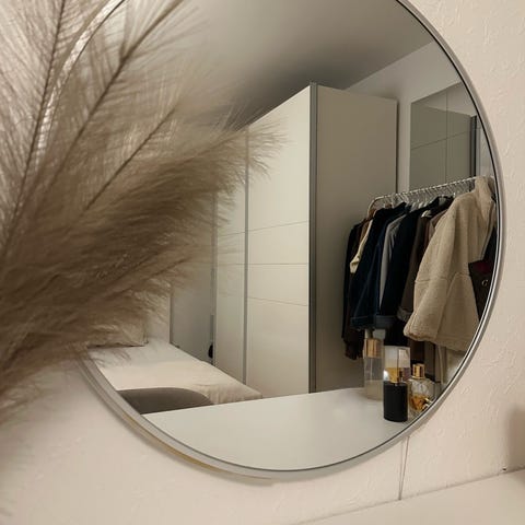 IKEA rundt spejl med enkel, moderne ramme. Velegnet til ophæng i fx stue, entre eller soveværelse. Neutralt design, der passer ind i forskellige indretningsstile.