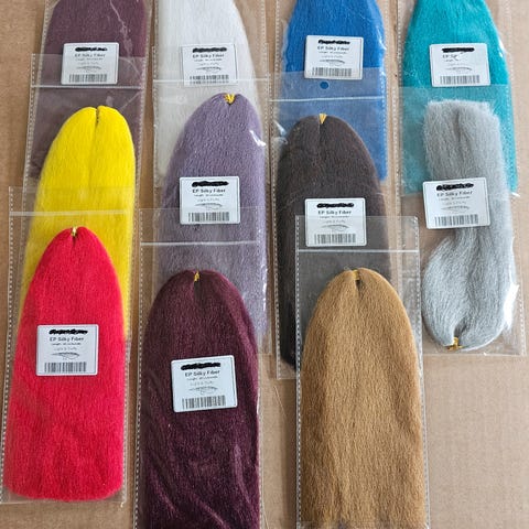 Blandet parti fluebinding materialer i forskellige farver og typer. Sættet består af flere poser med materialer egnet til fremstilling af fluer til fiskeri. Indholdet omfatter blandt andet syntetiske og naturlige materialer i forskellige strukturer og nuancer, som kan anvendes til kroppe, haler og vinger på fluer. Velegnet til fluebinding, hvor der ønskes variation i farver og materialer.