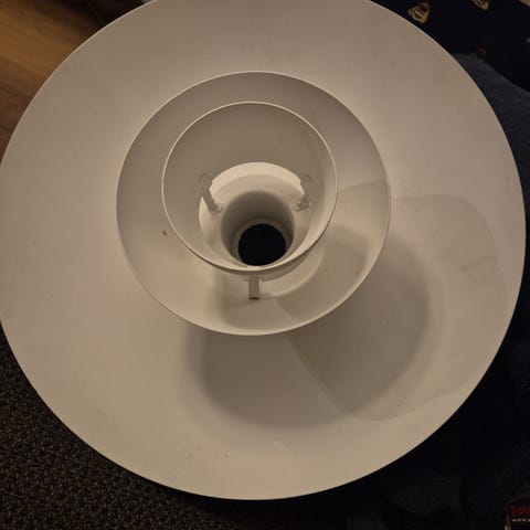 100% bulefri PH 4/3 lampeskærm med bæreskive og bund. Lampen har patina. (mangler fatning)
