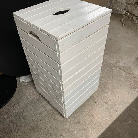 Vasketøjskurven er brugt, men flot og i særdeles god stand. Stofposen kan vaskes.