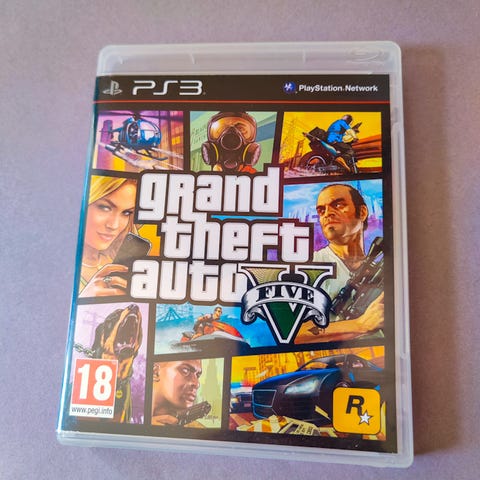 PlayStation Grand Theft Auto spil. Actionspil til PlayStation med åben verden, hvor spilleren udfører forskellige missioner i en by. Spillet er på disc og er mærket med aldersgrænse 18 år.