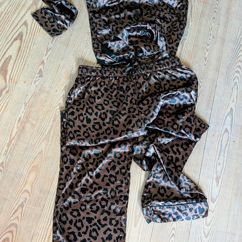 Primark sæt pyjamas til kvinder i størrelse L. Sættet består af en rød overdel med krave og lange ærmer samt matchende røde bukser med elastik i taljen. Materialet er polyester. Egnet som nattøj eller loungewear.