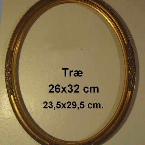 Oval træramme – guldbemalet – ca 67x40 træramme