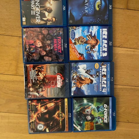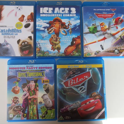 Blu Ray tegnefilm, 25 kr pr stk, tá 5 for 100 kr.