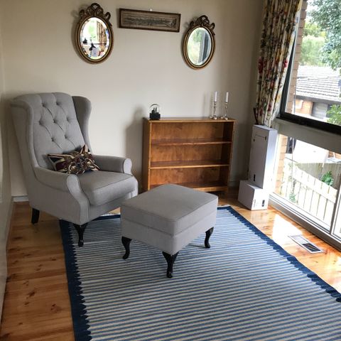 Helt nyt tæppe i uld/bomuld. Sælger da jeg ønsker et større tæppe.