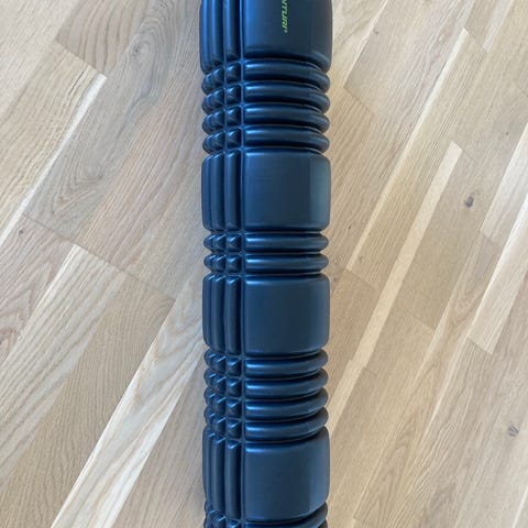 Tunturi foam roller i orange farve. Strukturen har markerede mønstre og forhøjninger, som giver mulighed for varierende tryk ved øvelser. Velegnet til muskelafspænding, udstrækning og genoptræning. Kan bruges på gulv til ryg, ben, arme og andre muskelgrupper.