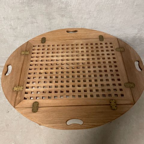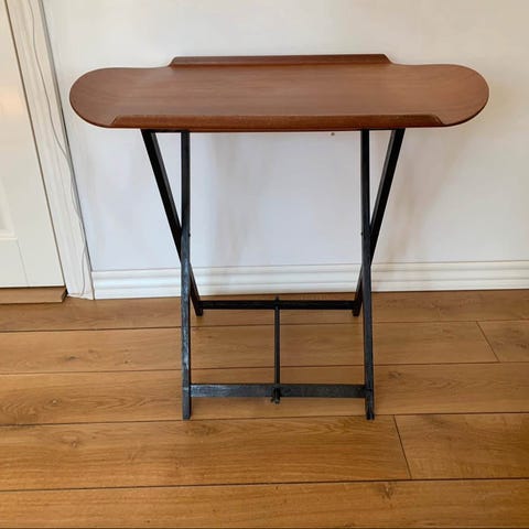 Bølling bakkebord i teak. Har brugsspor på de to sorte plader deraf lav pris.
