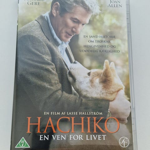 Hachiko: En ven for livet dvd film. Spillefilm instrueret af Lasse Hallström med blandt andre Richard Gere. Filmen er baseret på den sande historie om hunden Hachiko og skildrer forholdet mellem en mand og hans hund. Udgivelsen er på dvd med dansk tekst på omslaget og aldersmærkning fra Medierådet for Børn og Unge.