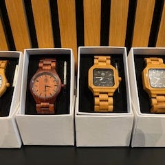 Fint bambus-ur med læderrem sælges. Stort set ubrugt. Skal have et nyt batteri.